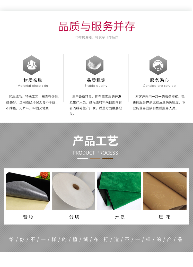 最后就是植絨布的用途將會更加的廣泛,因為智能制造,因為方便。比如之前產品是用麻布,棉布包裝的,可能都會選擇植絨布來包裝。換句話說就是植絨布將會更加蠶食它的同種替代產品。