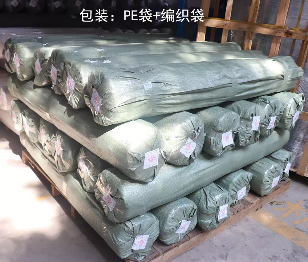 外省的客戶所訂購的植絨布,我們都用PE帶包裝后,外面套牢固編織袋的包裝
