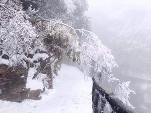 細細的樹枝和窄窄的竹葉上裹起了白雪,