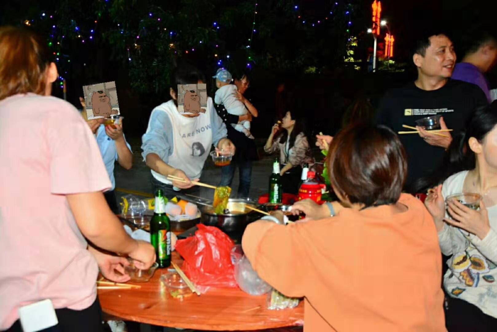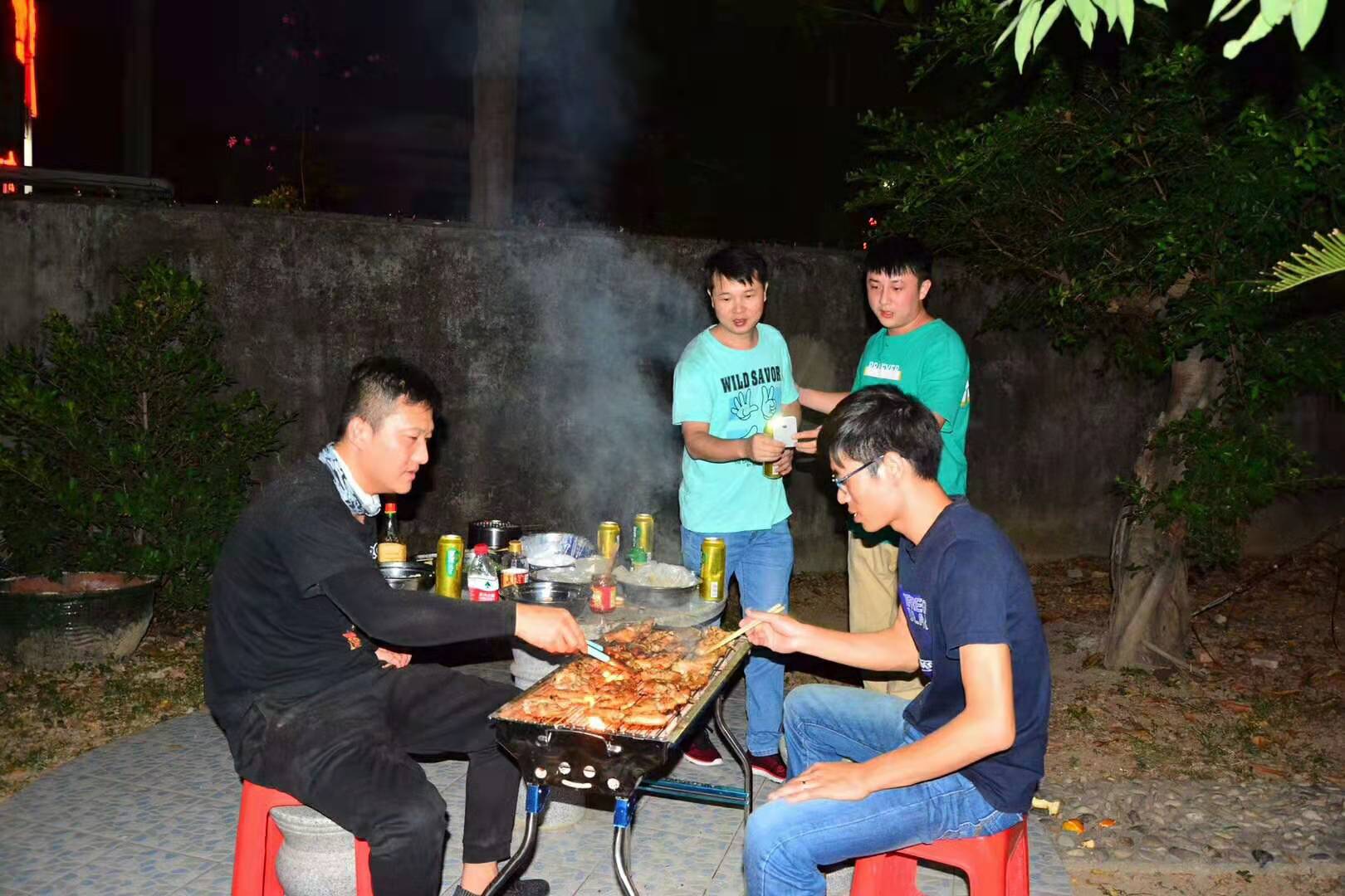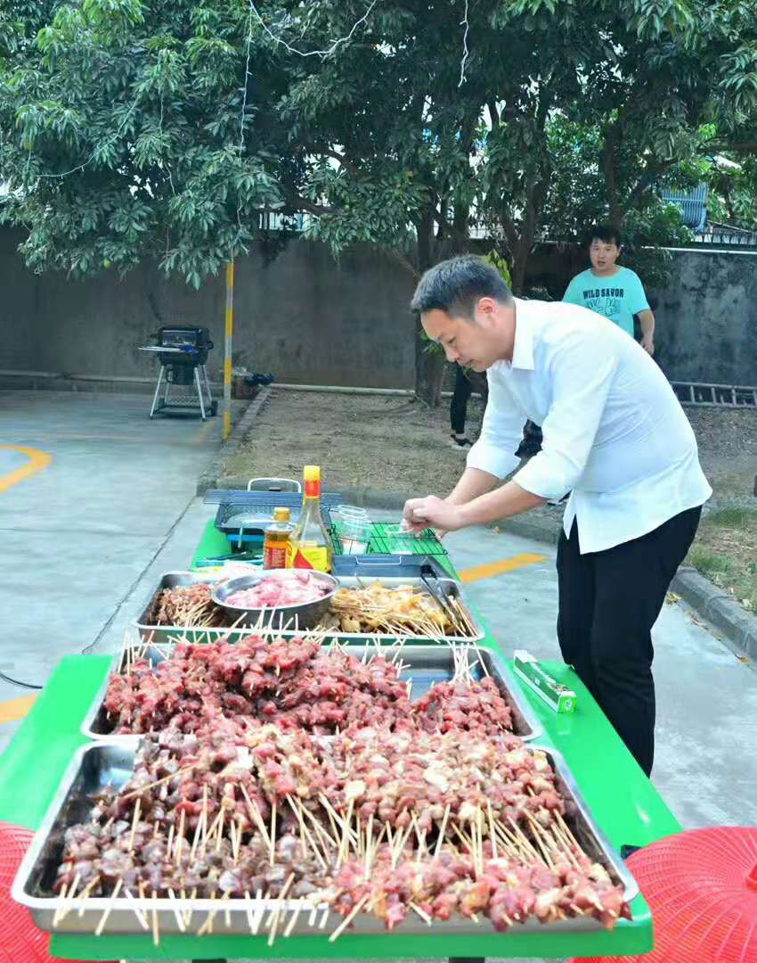 活動地點:公司前院,活動當天,各部門負責工作準備到位,張燈結彩,連接電路,搬桌椅,買食物、水果,清洗食物,串燒烤串,清洗餐具等,各方面團隊均配合到位,