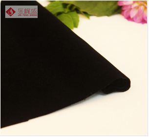 我們會站在客戶的角度上真心為客戶著想,像有客戶想要棉布底的絨布,但是又超出他們的預算時,我們會結合他們的產品,為建議他們針織底。像這款針織底黑色短毛植絨布,性價比就非常高,質感卻毫不含糊。