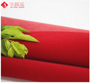 植絨布按底材可以分為無紡底、水刺底、綢布底、針織底、棉布底等等,價格也是依次遞增的,而植絨布絨面又可以分為粘膠毛、棉毛、尼龍毛,絨毛長度又可以分為短毛、中長毛、長毛等等,價格當然也是尼龍長毛的絨面最舒服最貴的。這款紅色無紡短毛植絨布,廣受一些底成本廠家的青睞,性價比極高。