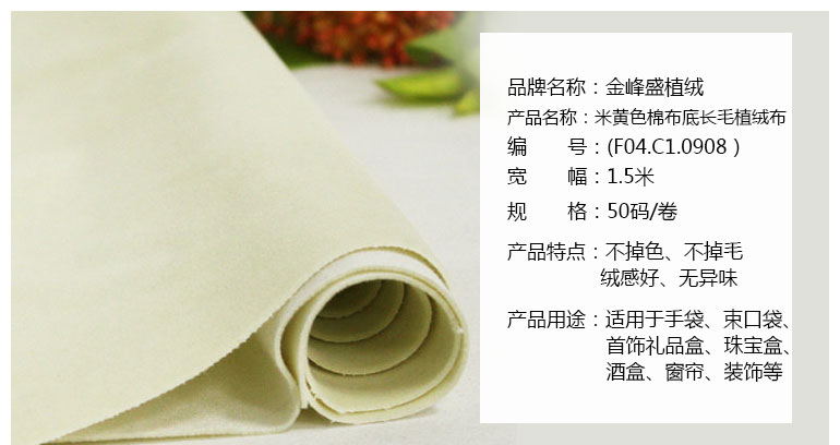 米黃色棉布底長毛植絨布(F04.C1.0908)