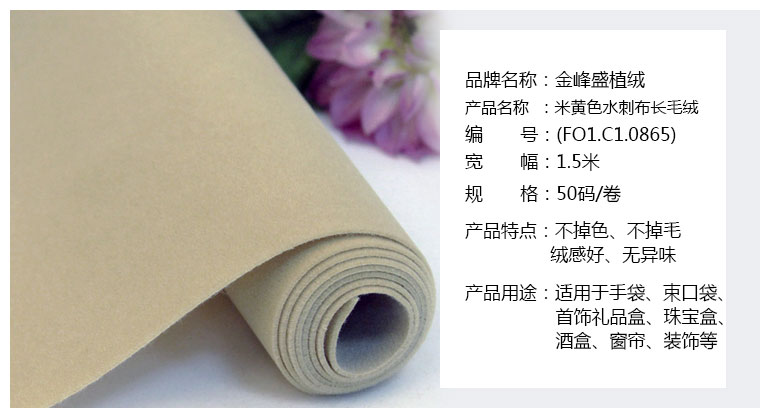 • 產品簡介:金峰盛植絨專業生產長毛植絨布、短毛植絨布、珠粒植絨布、揉紋植絨布、壓花植絨布,并可過自粘膠,還可做裁條,分切,沖型等植絨布加工。這款長毛植絨布,可根據客戶的要求進行各項環保測試,產品環保無異味。