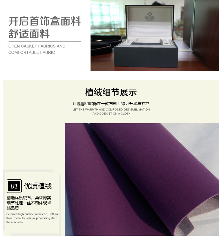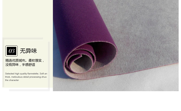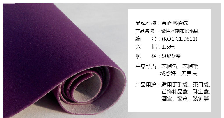 • 產品簡介:用途:適用于家具、首飾禮品盒,煙酒盒等內襯與外包裝。 產品優勢:立體感強、顏色鮮艷、手感柔和、豪華高貴、形象逼真、無毒無味、保溫防潮、不脫絨、耐摩擦、平整無隙。 金峰盛植絨專業生產各類布底植絨布、紙底植絨布、PVC植絨布/PE等底材植絨布/植花植絨布、以及公仔植絨布、工藝品植絨布、五金植絨布、玻璃等植絨布,并可代過自粘膠。